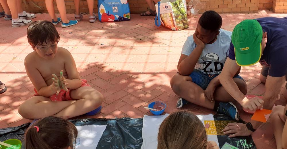 Ya en Bormujos, nos encontramos con un grupo juvenil en el Parque de Los Álamos, donde nos presentamos y nos dividimos en grupos para participar en una Ginkhana acuática para sobrellevar las altas temperaturas, en las que los chicos/as tuvieron que colaborar y en algunos casos adaptar.