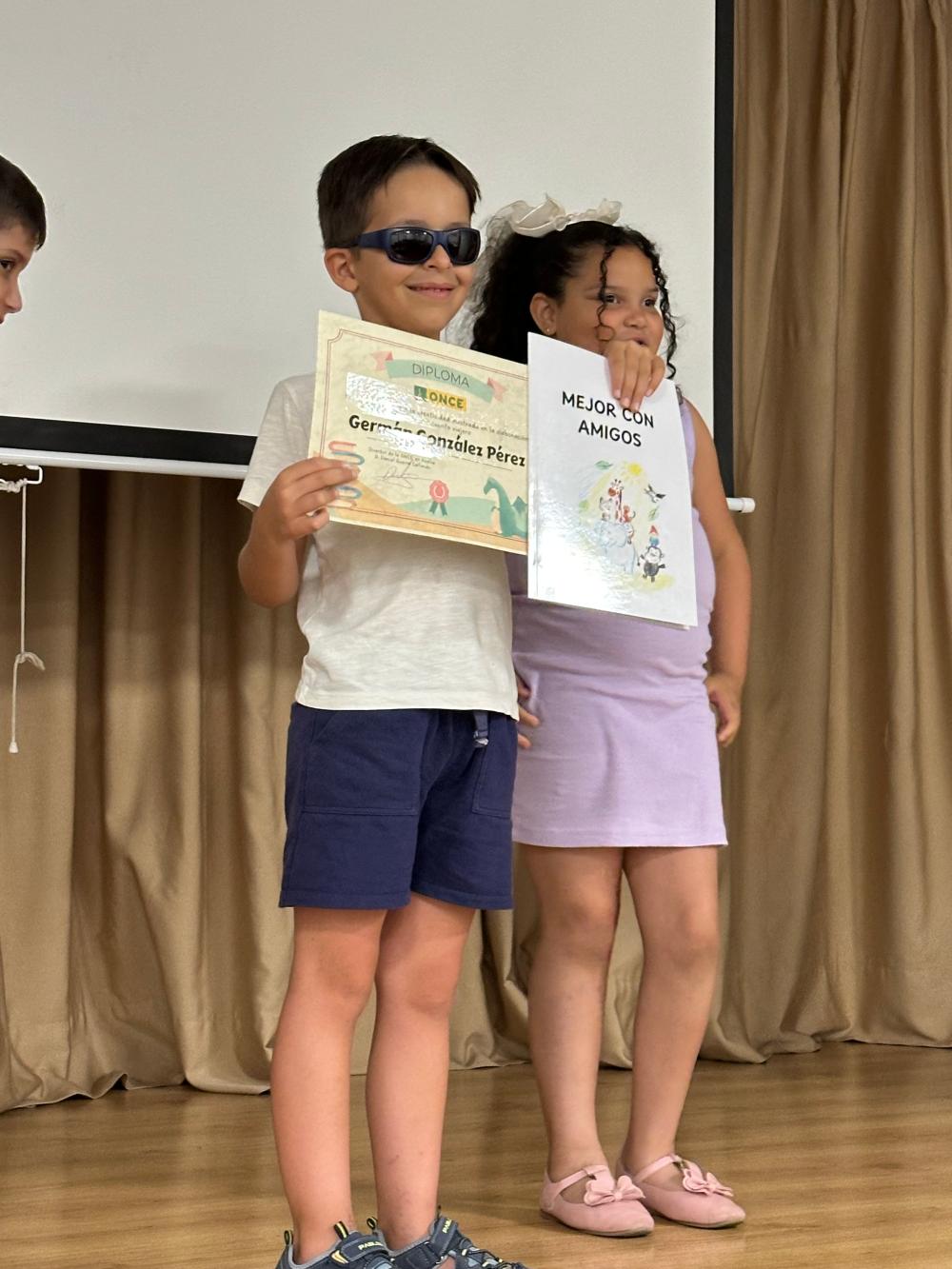 En la tarde del 19 de junio de 2025, miembros del Equipo, familias y alumnado pudieron disfrutar, en una tarde mágica, de la presentación de los Cuentos Viajeros que estos últimos habían escrito. Dos divertidas obras con un alto contenido imaginativo que fueron elaboradas usando distintas herramientas de acceso tales como líneas Braille y ordenadores portátiles adaptados y que fueron presentados y leídos por una de las maestras del Equipo (Rocío Benjumea Pérez), ante la grata sorpresa e ilusión de los padres y madres que llenaban la sala de usos múltiples del edificio de la Sede de la ONCE, en Huelva.