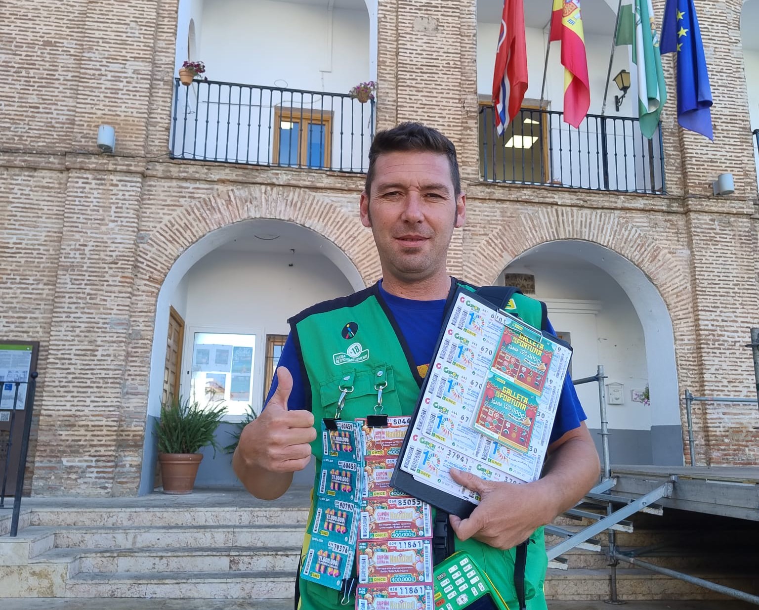 Andoni Guevara Ibáñez, vendedor de la ONCE desde 2019, vendió 10 cupones premiados con 20.000 euros cada uno en Algeciras en el sorteo del sábado 20 de septiembre, repartiendo así 200.000 euros entre sus clientes.